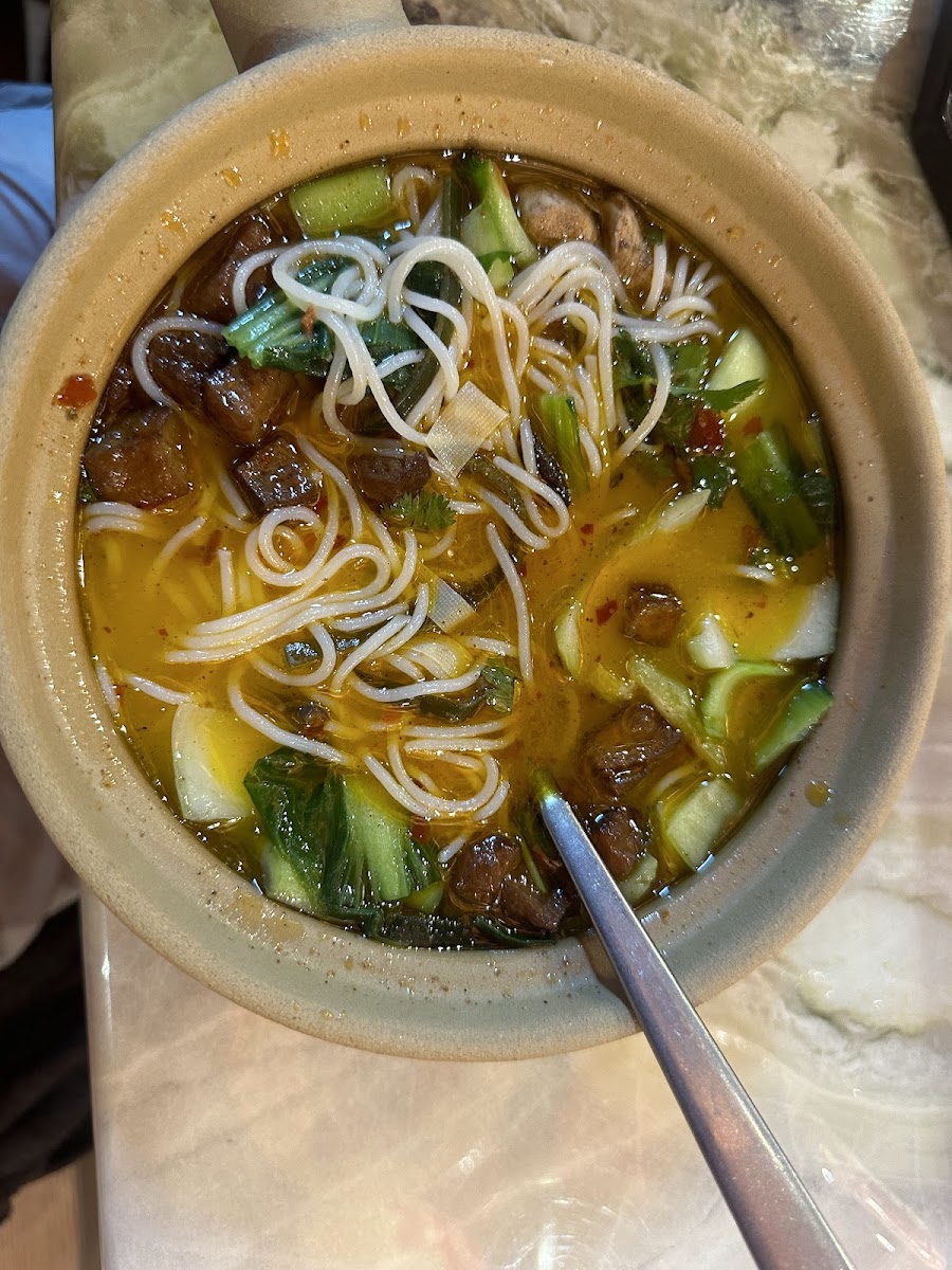 Cute atmosphere, food tasted fresh. I didn’t care for the clay pot, but the thick noodles we got were amazing! Flavors were good, but could be improved. Presentations looked good! I also got a homemade honey grapefruit tea, it was alright, don’t recommend. Classic fried chicken dumplings were good, I wish we would have tired something else though. The fried chicken was really good & different.